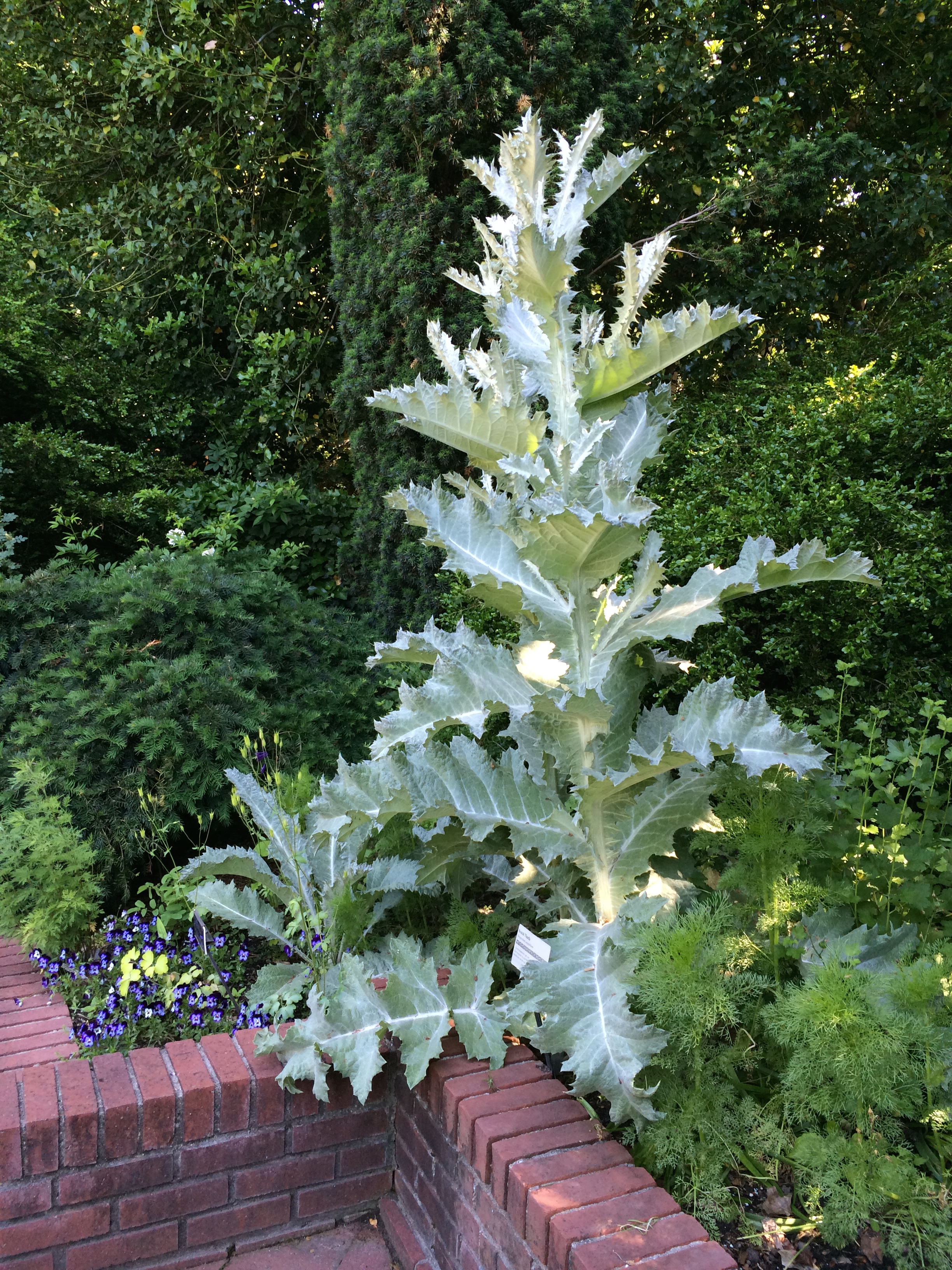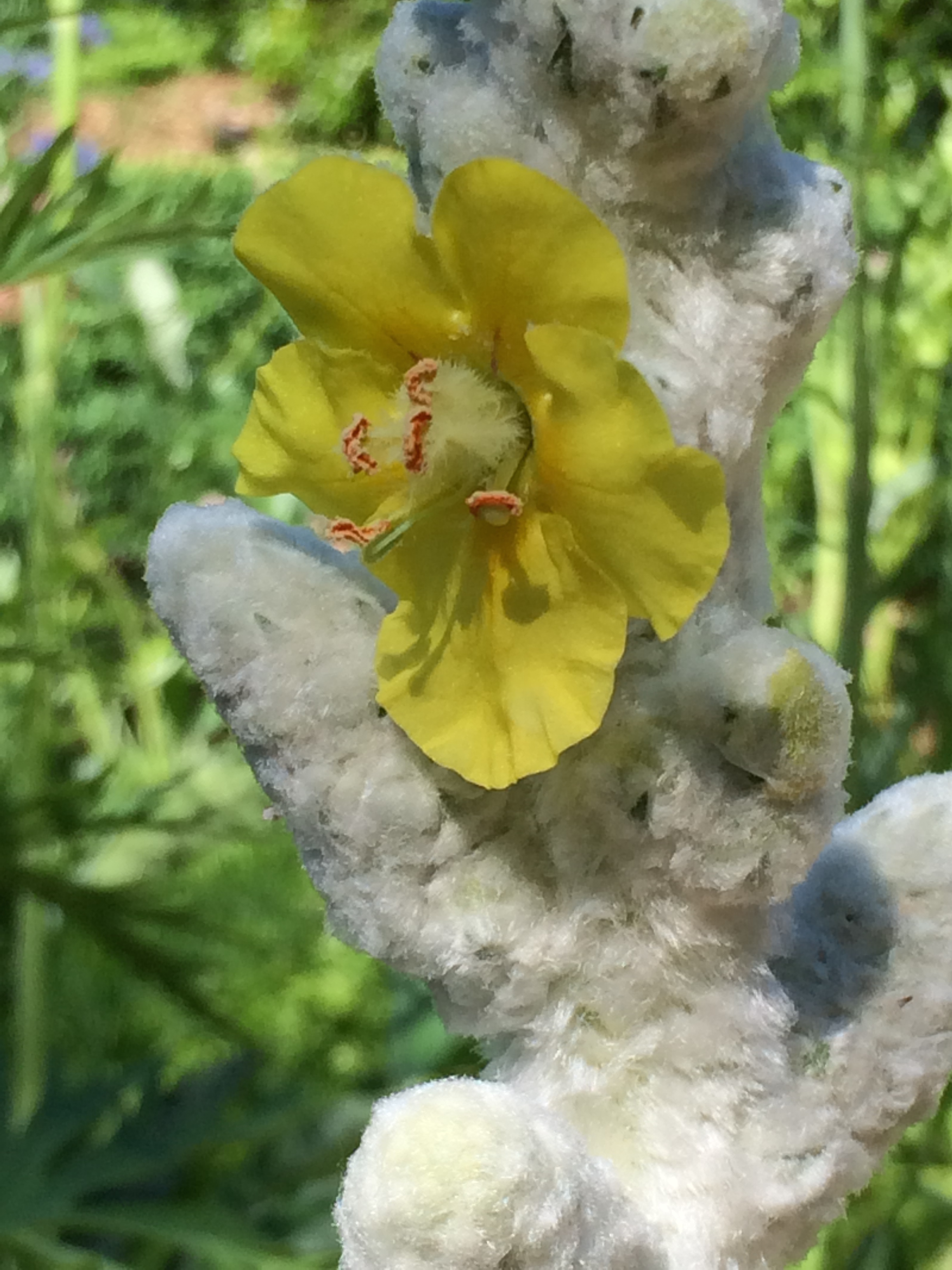Flowering stalk of the Arctic Summer Mullein (Verbascum bombyciferum ‘Polarsommer’) in the Shakespeare Garden.