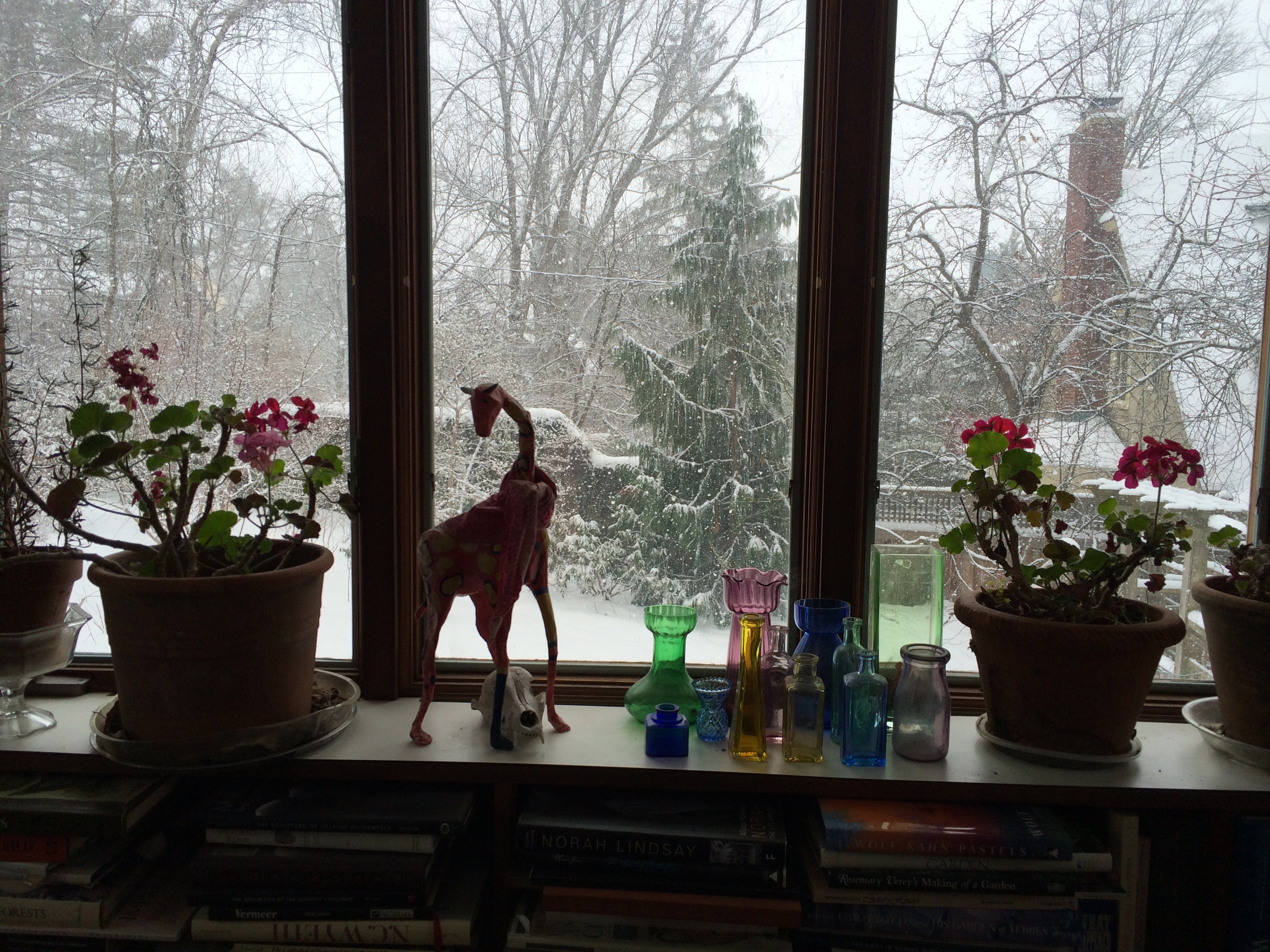 There was yet a new dusting of snow. Yesterday morning felt more like being in a snow globe turned upside down by an enthusiastic child, while today a cobweb mohair shawl covered surfaces and crevices. All this month I have been thinking of the cold and the snow, wanting to appreciate winter, understand how it helps us see or not see what is around us. (And if we feel a longing for what we cannot see, this perception should help us remember to love that which is missing when it is right in front of us.)