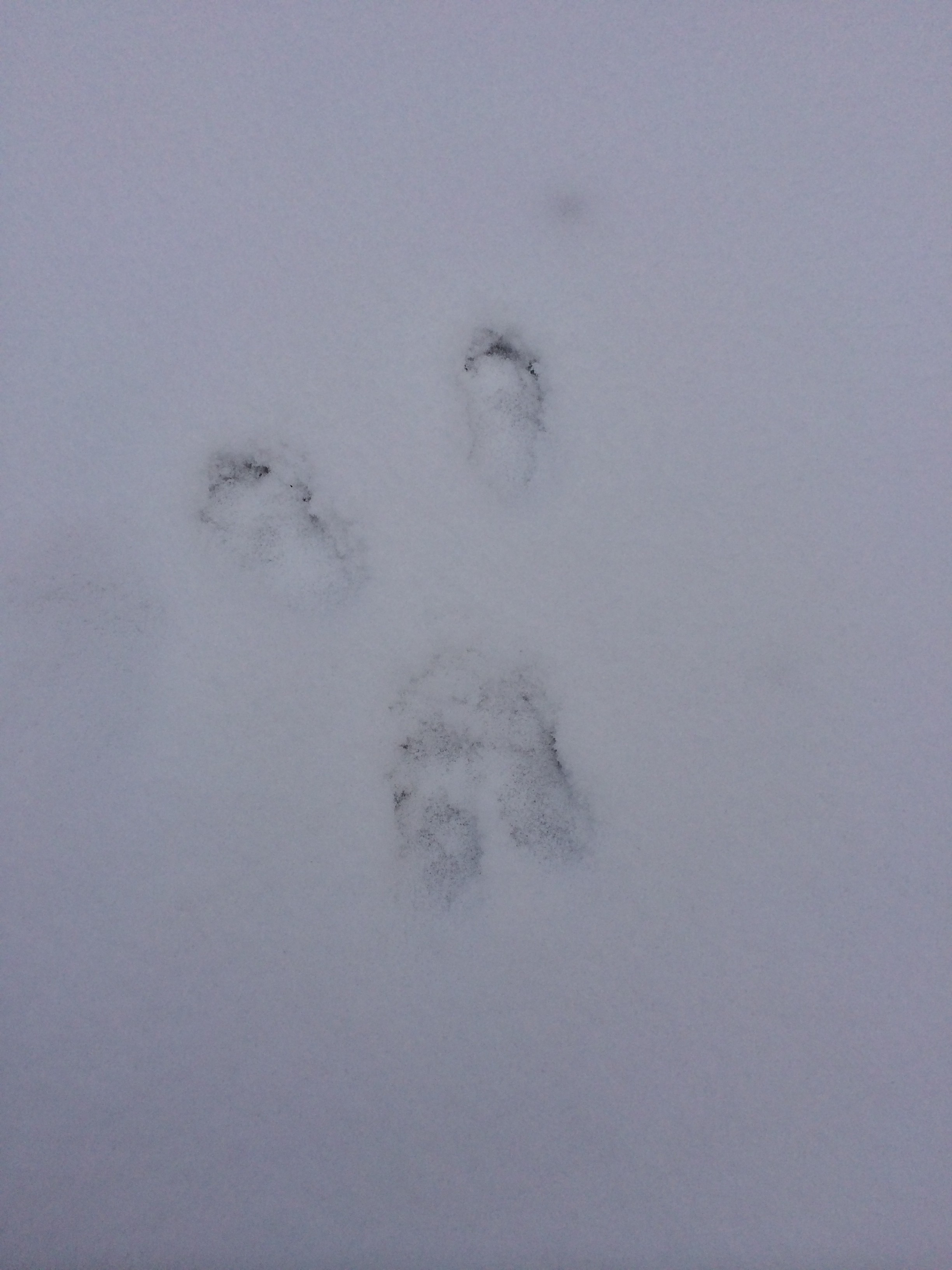 I see the tracks of a rabbit out early. I know her in summer, and now I see her hunched in the cold, feet making butterfly shapes.