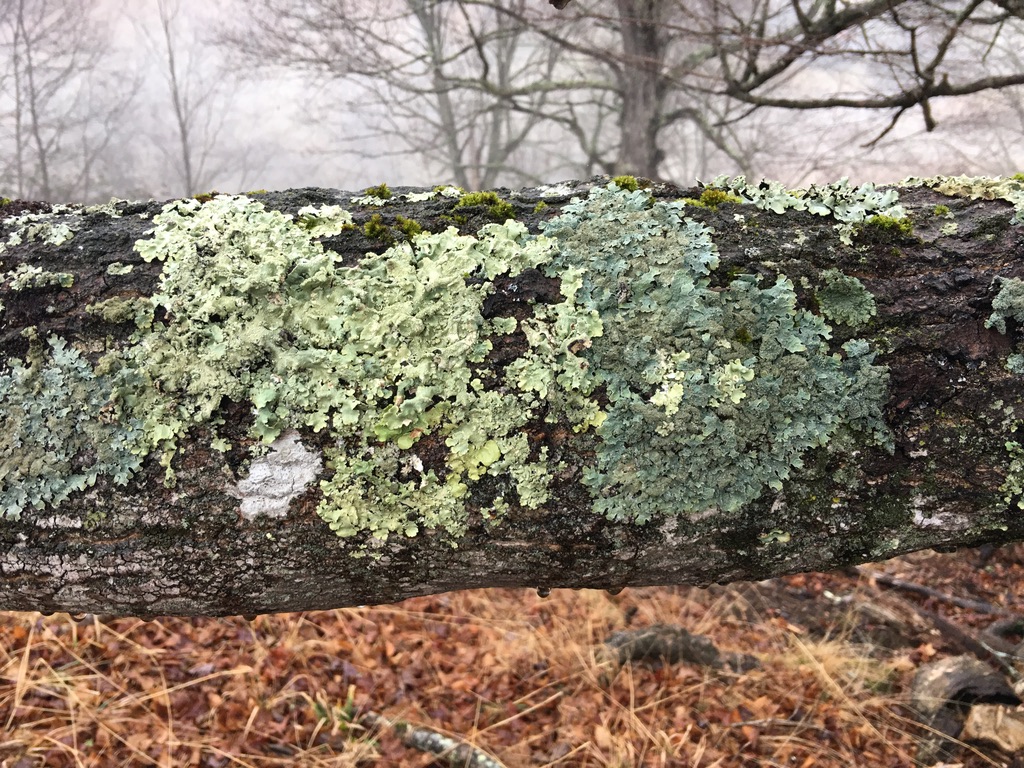 A misty, warm morning is the perfect time to focus on mosses and lichens. They appreciate moisture, so having absorbed the overnight rain and morning mist and expanded in the warmer than usual temperatures, they were in glorious condition on the morning of December 29. My husband says that my current interest in mosses and lichens makes it even harder to walk with me. I tend to creep, slowly. The stories of plants are harder to dramatize but just their appearance offers food for thought.