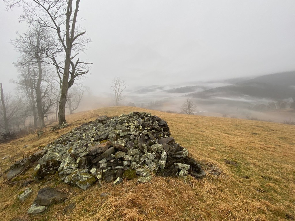 The mist looked gentle and soft, like a soothing gauze bandage over the landscape and its inhabitants. It was peaceful. I wondered whether I would want to see the sun again. Luckily the sun pays no attention to silly thoughts. As we walked, I marveled how the hollow always offers me surprises after all these many years. Sometimes I go looking for stories, sometimes they just find me, and sometimes they are the latest chapter in a long history.