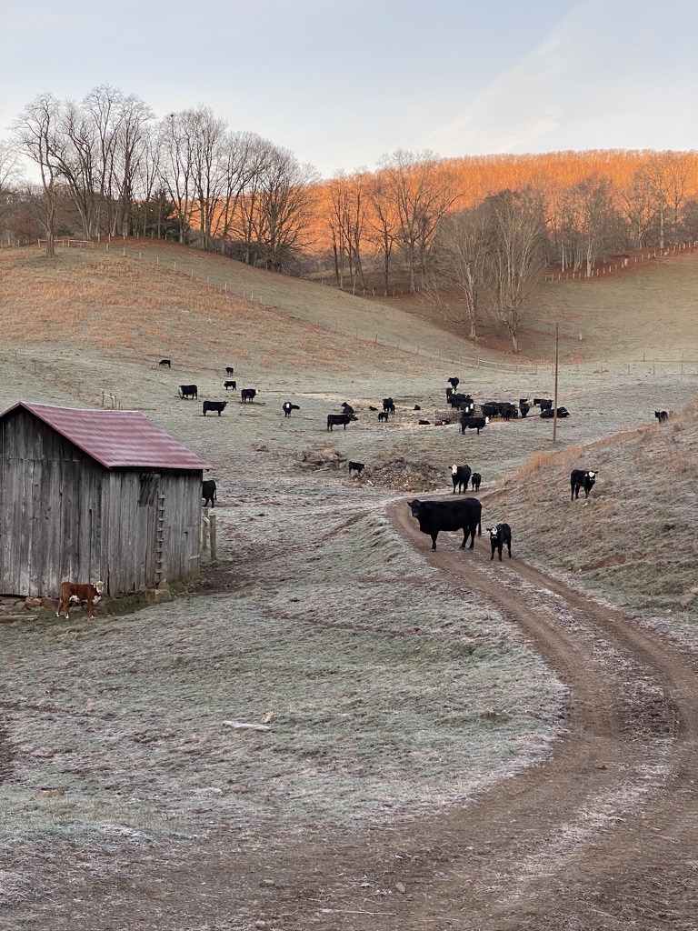 I love visiting with the cows and their calves over the garden fence. They are my main companions as the day goes into night at the end of hollow.
